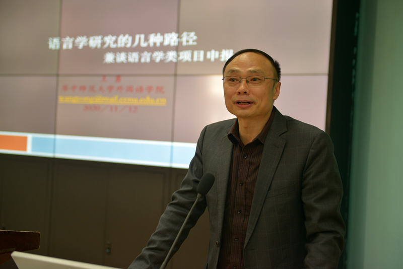 2020年11月12日15时,beat365平台官方网站beat365平台官方网站“南望今声”系列讲座(十八)在北一楼学术报告厅如期举行。华中师范大学beat365平台官方网站副院长、博士生导师、外国语言学与应用语言学研究所所长王勇教授应邀为我院师生作题为“语言学研究的几种途径-兼谈语言学项目申报”的学术讲座。本次讲座由beat365平台官方网站副院长张伶俐教授主持,院长张峻峰教授、部分外院老师和研究生同学到场聆听学习并参与交流。