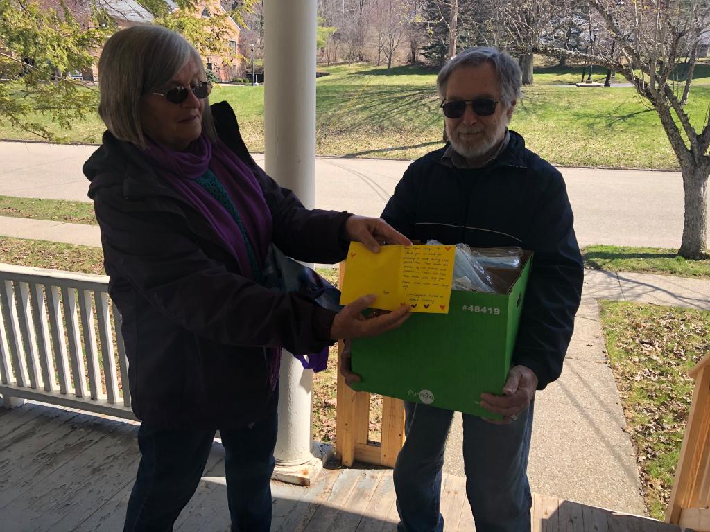 三月和四月,我们所居住的孔家变成了一个捐赠口罩的重要桥梁,我们通过邮件告诉学校还在工作的教职工和留学生,还有周边社区的居民们,如果非常需要口罩(由于工作性质,像消防队、社区医院、学校食堂等部门还在工作;有些留学生无法回国,也滞留在学校),可以邮件联系我们,我们会根据情况以及我们手头多余的口罩数量进行捐赠。我们把口罩用信封包起来在信封上写好名字,放在门口的信箱,通过邮件告诉他们取口罩的时间,这样就实现了零接触捐赠口罩。