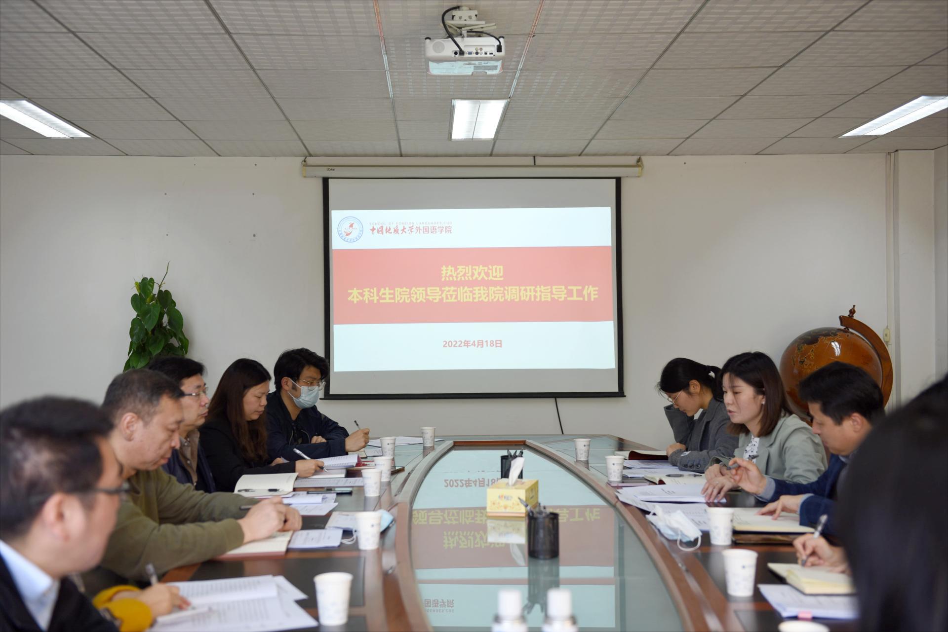 (通讯员 刘倩倩)2022年4月18日上午,为做好新一轮本科人才培养方案修订工作,校本科生院常务副院长周建伟、副院长王莹,以及龚伍军、王美娟、潘娣等一行五人莅临我院调研指导工作。学院党委书记刘世勇,院长张峻峰,副院长周宏图,副院长杨红燕,三级单位负责人及教师代表参加了调研座谈会。会议由张峻峰院长主持。