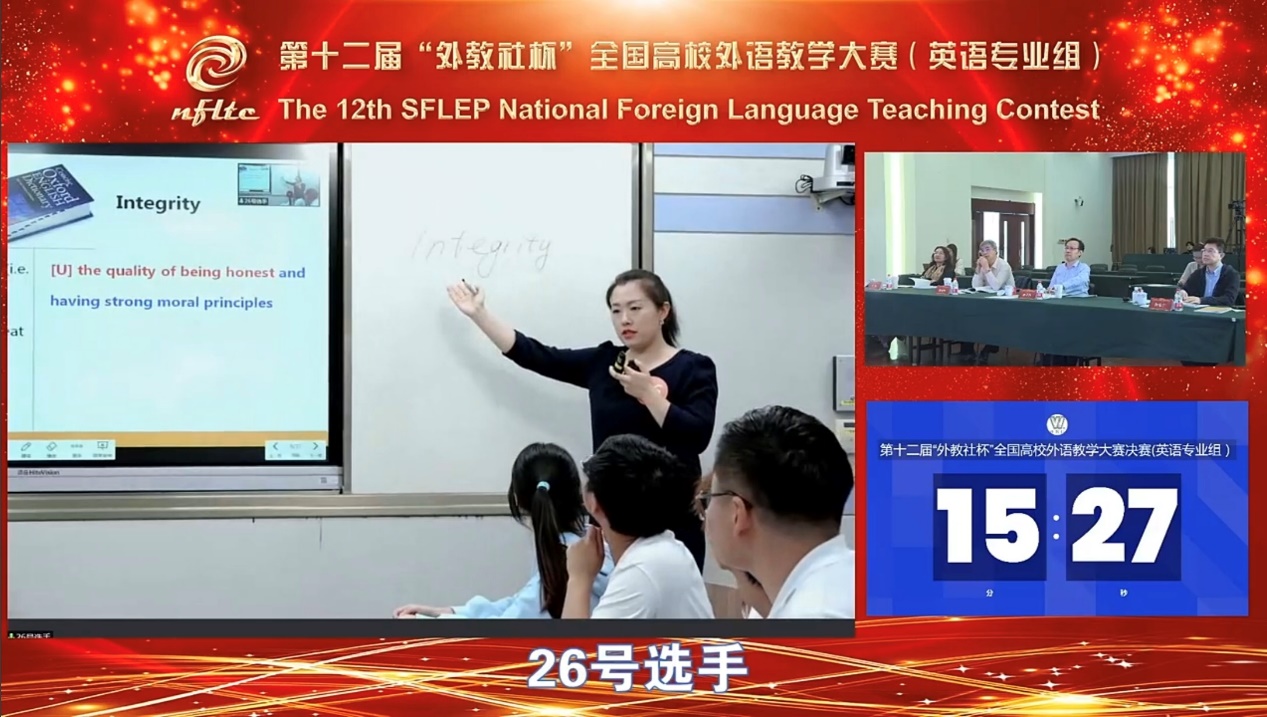 在9月23-25日举办的第十二届“外教社杯”全国高校外语教学大赛(外语专业组)全国决赛中,我院唐慧君老师从参与湖北省决赛的30余位高校参赛选手中脱颖而出,代表湖北省参赛,荣获全国三等奖,为我院参加该项赛事历年来取得的最好成绩。