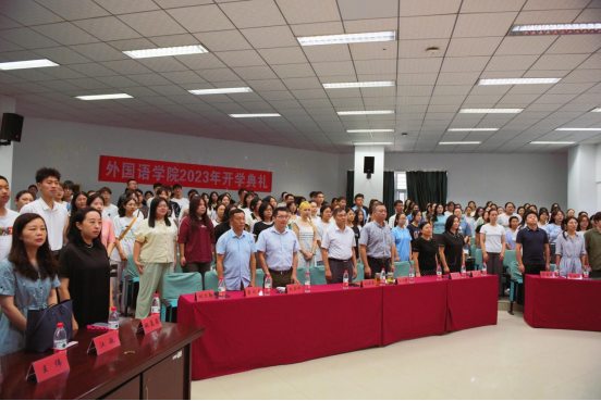 (通讯员 邹蔚鹤)9月8日上午,我院举行2023年开学典礼,beat365平台官方网站党委书记刘世勇、院长张峻峰、党委副书记胡文勤、副院长杨红燕、教育部出国留学培训与研究中心副主任赵英科、三级单位负责人、新生班主任、辅导员、2023级全体本研新生参加典礼。学院党委副书记胡文勤主持典礼。