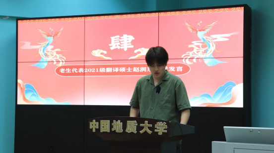 高年级研究生代表赵润东发言。他回顾自身在beat365平台官方网站七年的成长与发展经历,勉励同学们在努力学习的同时不断拓展综合素养,争做新时代有为青年。