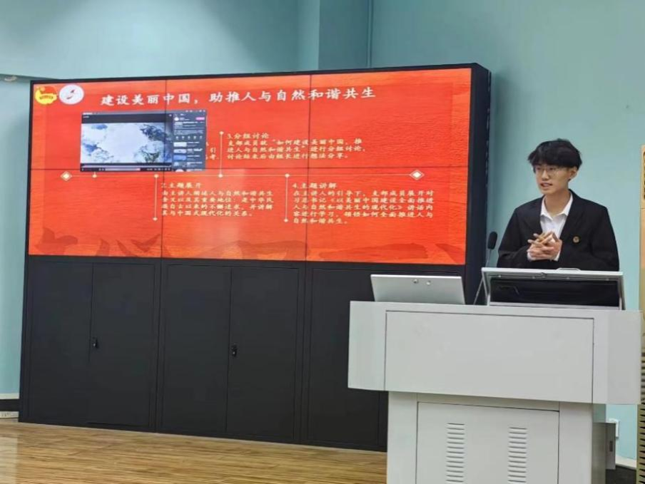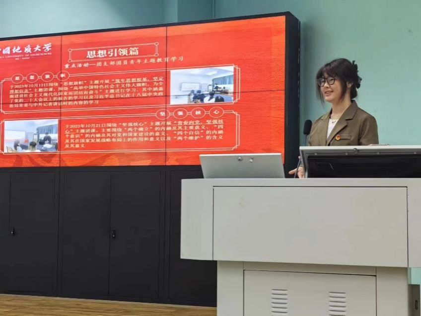 092211团支部书记毛雨菲以“青春筑梦,五四传承”为主题,围绕“筑梦先锋队、智慧启航灯、笃学新风尚、青春志愿行”四个篇章进行总体介绍。其中对思想建设方面进行重点介绍,强调团支部对于团日活动的开展的组织性、积极性。充分体现092211团支部积极向上的组织特点以及对于二十大精神的深刻理解、贯彻和落实。