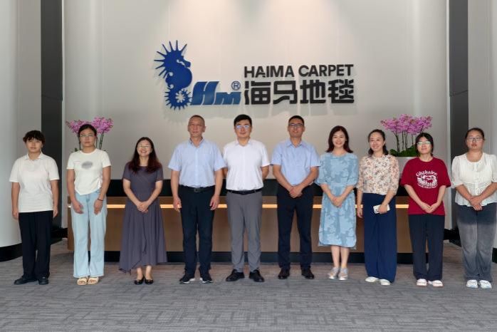 在威海海马地毯集团有限公司,张峻峰一行参观了企业产品展示中心并深入座谈,威海海马地毯行政总监谭扬、人力资源部经理赵体营参与交流。双方围绕外贸发展前景和人才培养需求展开深入探讨。谭扬介绍了公司海外业务拓展情况,特别是随着国际市场的不断扩展,企业在跨境贸易、品牌推广、跨境电商销售等领域亟需外语能力强、综合素质高的应用型人才。他还结合了自身外语专业学习和企业工作成长经历,为培养一专多能应用型外语人才提供了建议和思路。张峻峰表示,通过实地走访企业,能够更精准地掌握企业对外语人才的需求,从而优化人才培养方案,使教学内容更贴合产业实际。