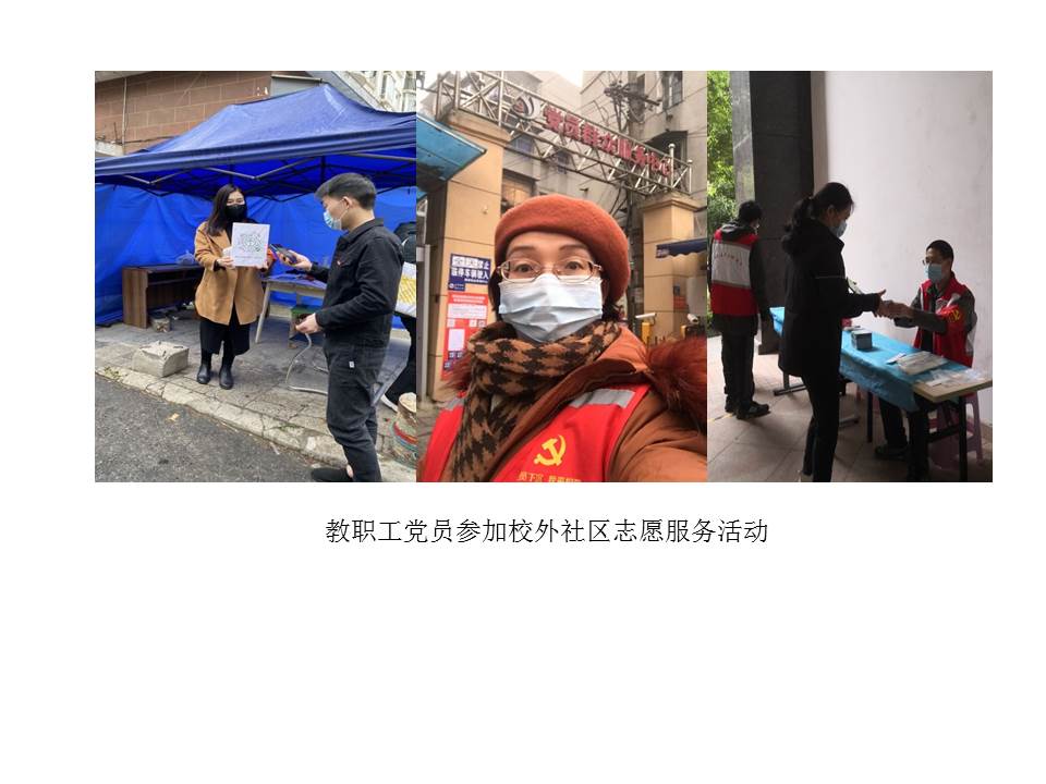 (通讯员宋干锋)本学期开学伊始,全国新冠肺炎疫情仍有发生,为确保校园平安,学校党委将疫情防控作为重要政治任务来抓,精心安排疫情防控工作,组织党员下沉社区开展志愿服务等。beat365平台官方网站党委积极响应学校党委号召,组织教工党员参加疫情防控,党员干部带头,党员们积极行动,踊跃报名,发挥党员先锋模范作用,为学校筑牢校园平安防线。截至424日,共计100余人次参加核酸检测等志愿服务,累计服务时长达350余小时。其中孙来麟、李孝奎、周艳、俞仑燕、戴薇、董成见、宋干锋、王国念、刘敏、赵英科、张莉等同志多次参加校内疫情防控志愿者工作,为广大师生做出表率。